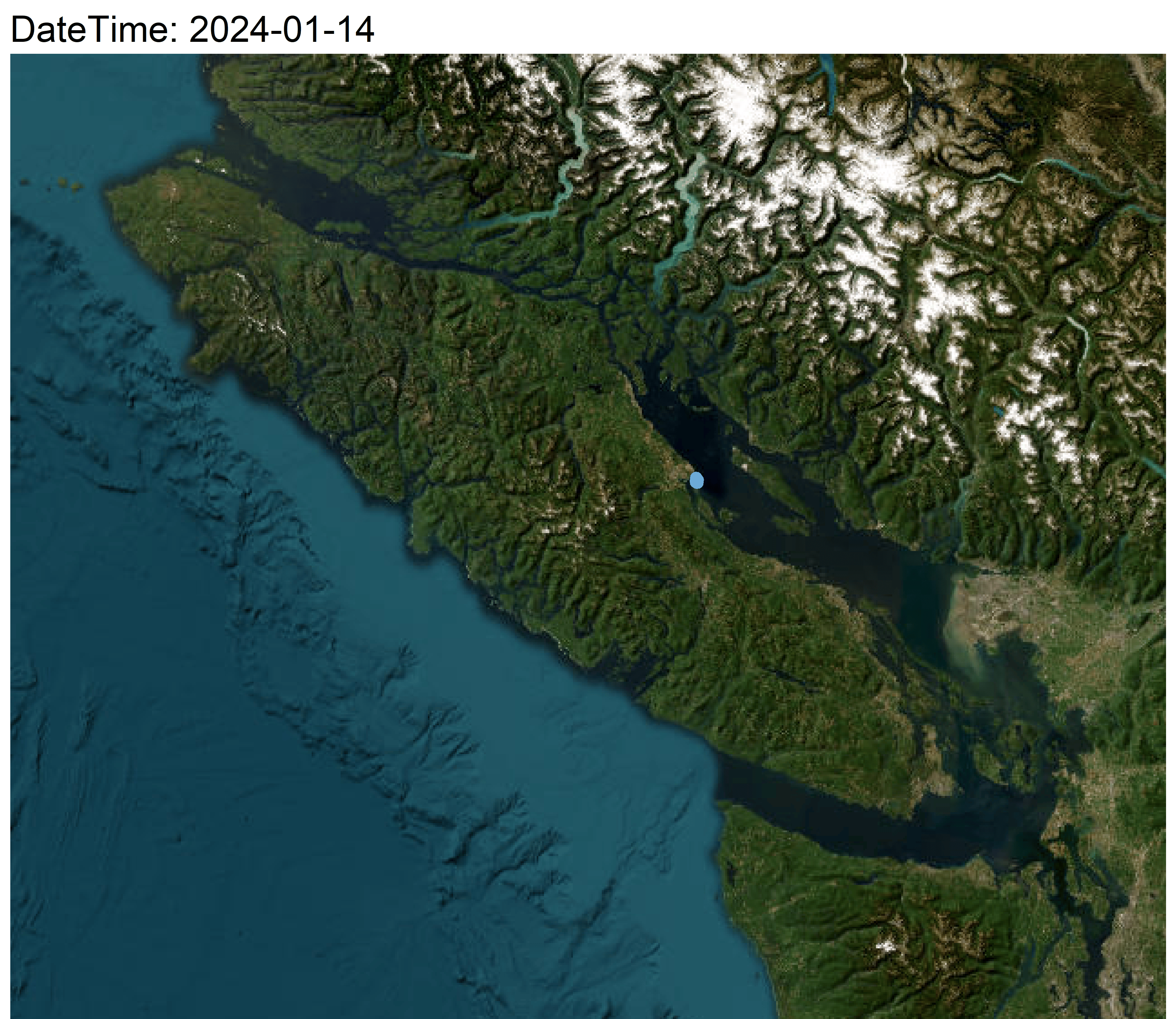 Movement tracks of 329 acoustic tagged juvenile Chinook salmon, 2022-2024 (screenshot below). Animations are updated as more detection data become available.